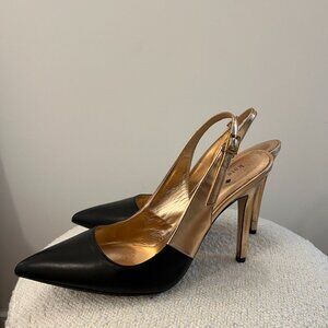 Kate Spade Black Leather Gold Slingback Pointed Toe Pumps – US 8