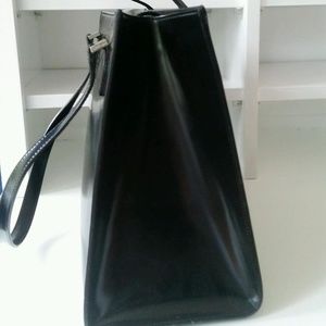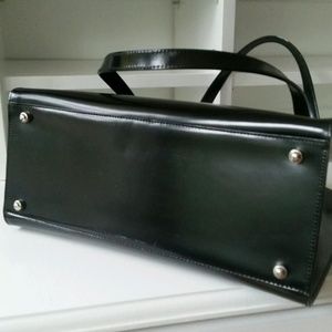 Stunning and classy black leather satchel with chic red lining. In pristine condition, not a single mark. An essential staple item for the discerning woman's handbag cache.