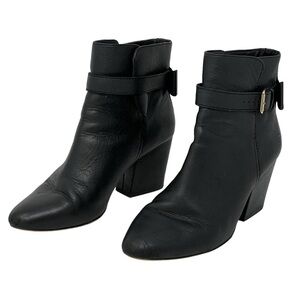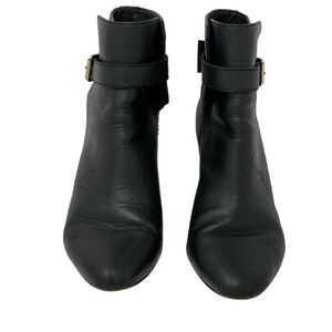 3” heel. Buckle detail. Rear bow with gold tone spade logo. Good used condition. **Toes on both booties show wear, see last pic**