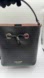 Chic black leather shoulder bag. Features drawstring closure. Ideal for everyday use.