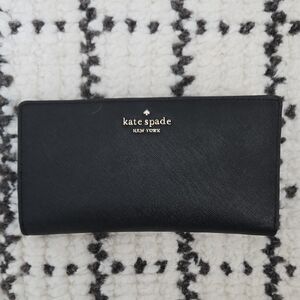 Sleek black leather wallet by Kate Spade. Features elegant design and practical compartments.