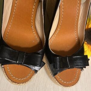Step out in this gorgeous in style elegant black leather wedge size 9 women’s from Kate Spade. Perfect for special occasion, these shoes offer both comfort and sophistication. previously owned in great condition.