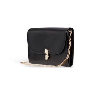 🔹 Material: Smooth black leather with luxe spade kisslock hardware