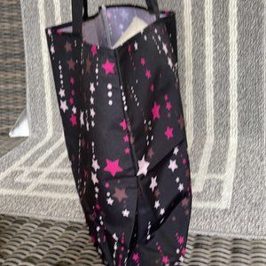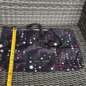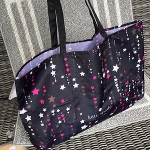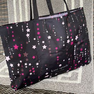 Kate Spade Black Multi Color with Light and Dark Pink Stars Canvas Tote XL Reusable Shopping Beach Bag