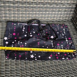 Kate Spade Black Multi Color with Light and Dark Pink Stars Canvas Tote XL