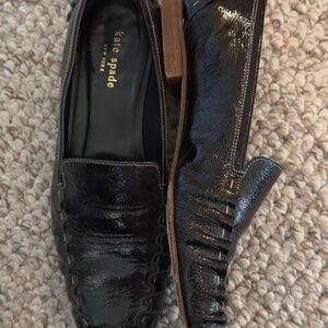 Elegant black patent leather loafers. Classic design with a glossy finish. Perfect for any occasion.