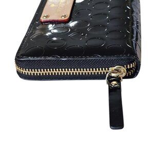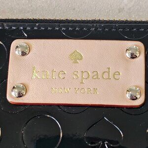 Kate Spade Black Patent Leather Zip Around Wallet Embossed 8x4 Designer Shiny