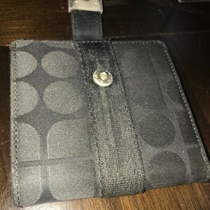 This is a lovely vintage Kate Spade Black Pia Dot Satin w/Leather & Chrome Snap Flap Trim Bifold Wallet