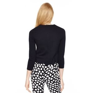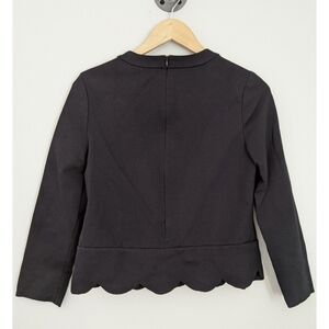 Excellent pre-owned condition. Kate Spade Black Ponte Scallop hem crop top. 3/4 length sleeves. Size 4.