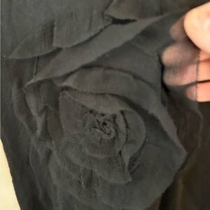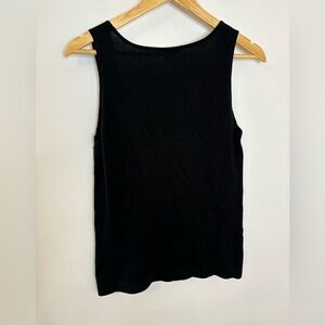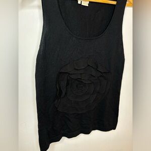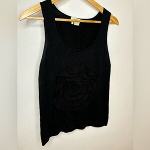 Kate Spade solid black knit tank with large center Applique rose on front. Inner contents tag is removed, borrowed photo from another listing. Tank is in gently pre worn condition. Classic, elegant, whimsical, girly, flirty style. (A)