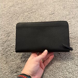 Kate Spade Black Saffino Leather Zip Around Large Wallet