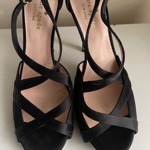 Kate Spade Black Satin Open Toe CrissCross Heels 3 3/4 " Heels Made in Italy Sz 6M GreatCondition