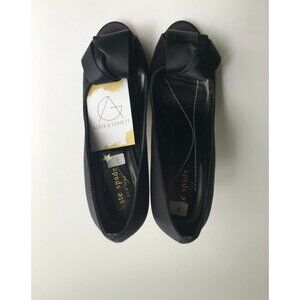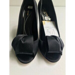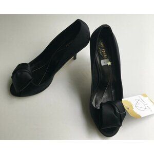 Kate Spade Black Satin Knotted Peep Toe Heels, Size 7 (US) 37 (IT)