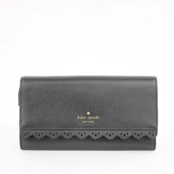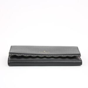 Kate Spade Wallet In Black Leather With Scallop Edge Detail And Gold-Tone Logo. Excellent Condition