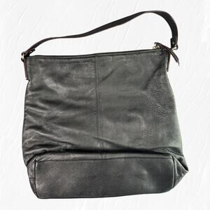 Classic Kate Spade black leather shoulder bag with two zippered front pockets. It's got a roomy interior and a comfy strap, perfect for daily use. Still in good shape, just some light markings on top of inside on white and light wear on the leather- small mark noted in pics. Super versatile and goes with pretty much anything.