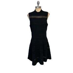 • kate spade dress, Kate Spade XL, Kate Spade, sleeveless dress, black dress, sweater dress, mesh panel dress, women's dress, flared skirt dress, knit dress, mock neck dress, party dress, designer dress
