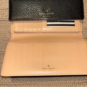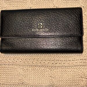 Chic black wallet by Kate Spade. Features a textured leather design with a gold logo accent.