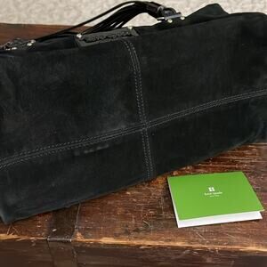 Kate Spade Black Suede and Patent Leather Vintage Satchel Handbag 12"x5"x7"