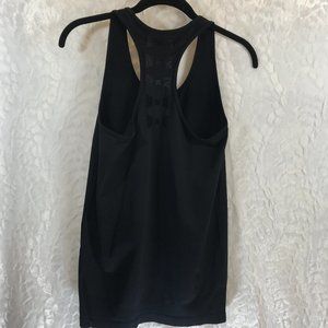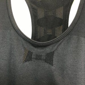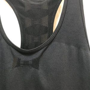 Sleek black tank top. Features a subtle bow detail. Perfect for casual wear.