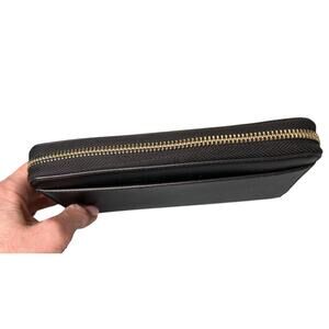 Kate Spade Black Textured Zippered Wallet Gold Logo Hardware 8"x4.5"x1"