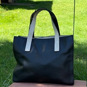 Elegant black tote with dual handles. Simple and stylish design. Perfect for everyday use. Has Story Book lining.