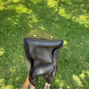 A little darkening around inside zipper pocket that can be cleaned but other than that, it’s in very good condition.