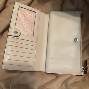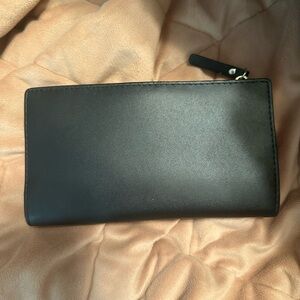 Elegant black wallet. Features gold accent. Ideal for essentials.