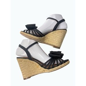 Elegant black wedges with a stylish bow. Perfect for any occasion.
