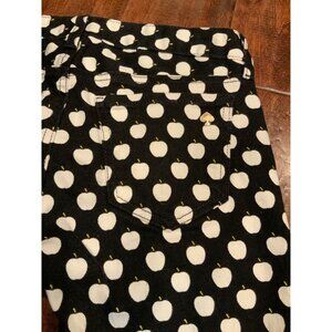 Kate Spade Black With White Apple Pattern "Broome Street” Slim Jeans, Size 24