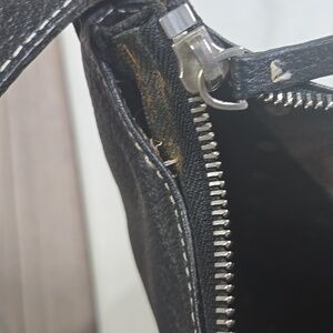 used in good condition, it has unstitching on the zipper top corner , see pictures closely smoke free home size, 13"w x 10"h x 3"d, handle 8"drop