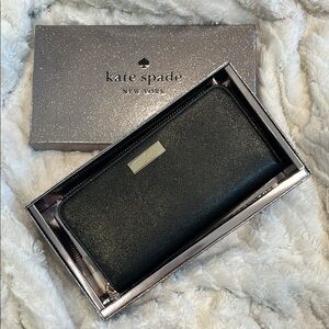Kate Spade Black Zip Around Patent Saffiano Continental Wallet new in box