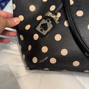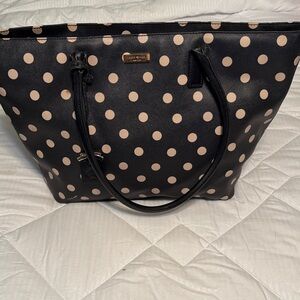 Elegant tote with playful cream dots on black. Ideal for daily use. Stylish and practical. Large tote. 18x11