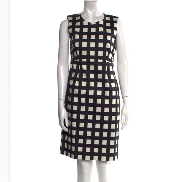 Kate Spade Black and Cream Grid printed cotton blend Trendy Style Midi Dress 14