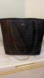 Chic Kate Spade tote with a glittery base. Stylish and spacious for daily use. There is some fraying on the handles. You can see where it is cracked a little. Other than that it’s in good condition!