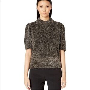 Kate Spade Black and Gold Metallic Dashing Beauty Textured Sweater Top