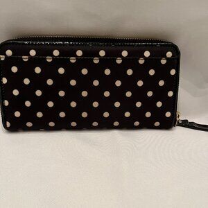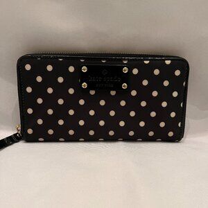 Kate Spade Black and Ivory Polka Dot Accordion Zip Wallet
