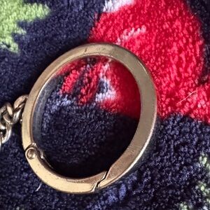 Adorable keychain with a black base and pink bow. Perfect for kids' bags.