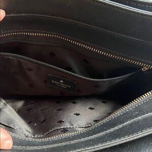 Elegant satchel with bold black and pink stripes. Ideal for any occasion. Preowned.