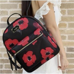 Stylish and functional, this Kate Spade backpack features a striking black and red floral design. Perfect for everyday use, it combines elegance with practicality.