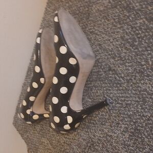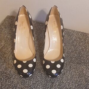 Kate Spade Black and White Heels with Polka Dots Size 6 Patent Leather