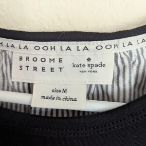 Stylish knit top with classic black and back in white stripes with ruffle hem