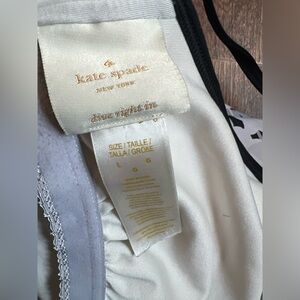 Dive into style with this chic one-piece by Kate Spade, featuring a classic black and white color palette. The sleeveless design with spaghetti straps offers a sleek and modern look, perfect for a casual night out or a cocktail event. Its fit-and-flare silhouette ensures a flattering fit, making it a standout choice for any occasion.