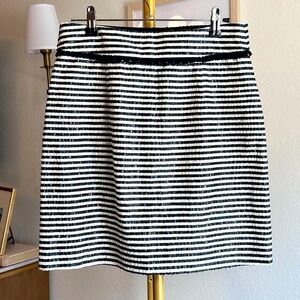 ✨ Pre-loved, excellent condition! Kate Spade Black and White Striped Sequin Silk Skirt- lined, with subtle multicolor sequins (see video for better detail!)
