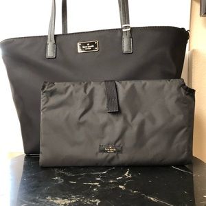 Comes with changing pad, pacifier pouch, and pockets for carrying diapers.