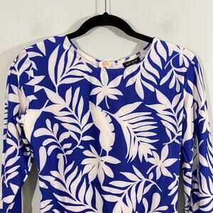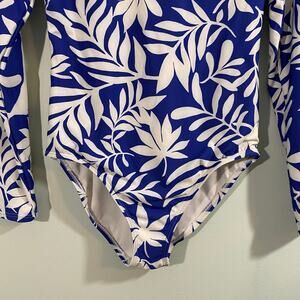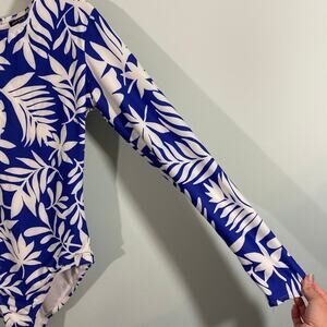 Kate Spade Blue Floral Long Sleeve Paddle Rash Guard One Piece Swimsuit Size M
