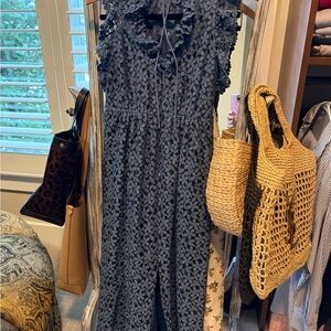 This elegant blue dress by Kate Spade is perfect for a wedding guest or cocktail event, featuring a halter neckline and flutter sleeves. The midi length and A-line skirt create a flattering silhouette, while the intricate lace overlay adds a touch of sophistication.