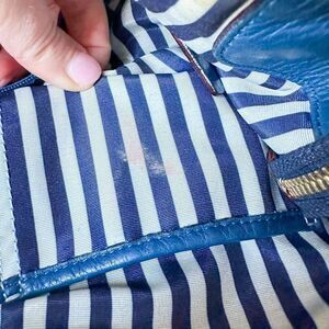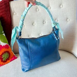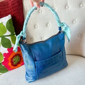 Kate Spade Blue Leather Hobo Shoulder Handbag Purse Custom Silk Wrap Strap