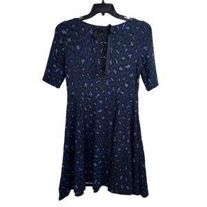 Kate Spade Blue Leopard Print Lace-up Ponte Dress Size M
