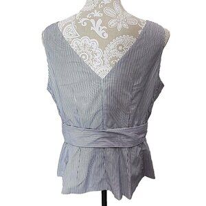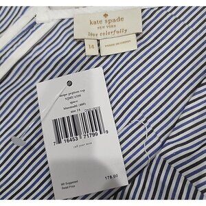 Kate Spade Blue Multi Stripe Peplum Top Sleeveless Cotton NWT Women's 14