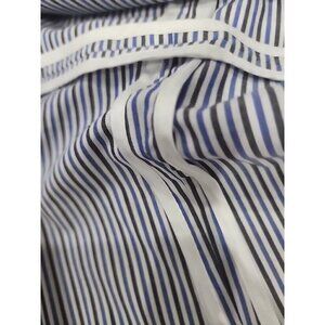 This Kate Spade top is a stylish addition to any wardrobe. The multicolored stripes and peplum design make it perfect for casual occasions. The sleeveless top has a round neckline and wide straps with a zip closure. It is made of lightweight woven cotton and has taped seams for added structure. The blouse features a bow and zipper accent, adding a touch of designer flair. It is available in size 14 and fits regular size. The garment care requires dry cleaning only. Perfect for summer, fall, and spring seasons.